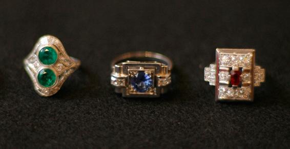 Des ornements et bagues des années 30 de style Art déco, basés sur des formes géométriques et lignes droites, leur donnant un style intemporel.